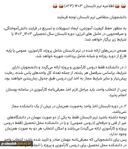 قابل توجه دانشجویان متقاضی ترم تابستان 3