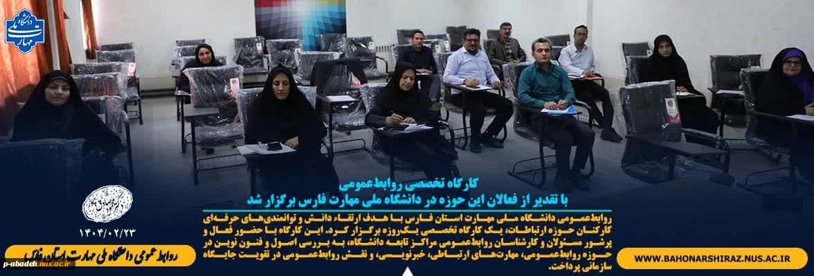 امتیاز دهید : کارگاه تخصصی روابطعمومی با تقدیر از فعالان این حوزه در دانشگاه ملی مهارت فارس برگزار شد 2 شنبه 27 اردیبهشت 1404 ساعت 11:28
