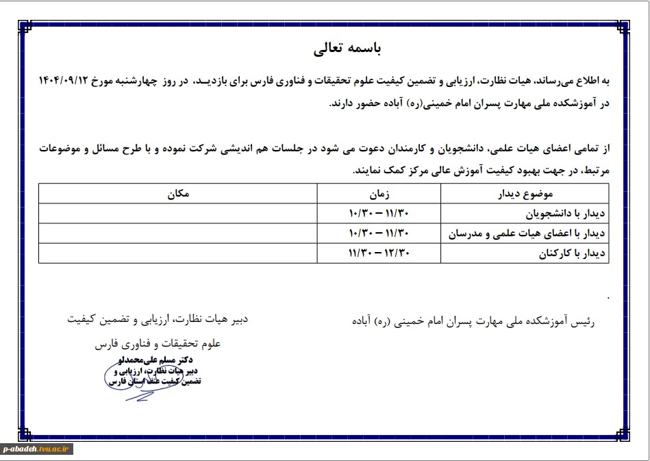 کانال مشاوره آموزشکده پسران آباده (امام خمینی (ره))