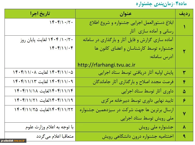 دستورالعمل اجرایی هفتمین جشنواره درون دانشگاهی رویش 2