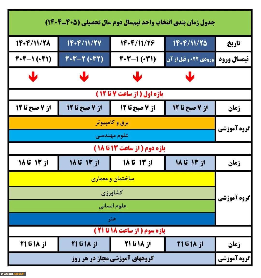 زمانبندی انتخاب واحد نیمسال دوم 1404